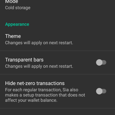 There is also an unofficial Sia mobile app. My phone is not powerful enough I guess to do much with the app so I grabbed some screenshots and that is about all I could do.