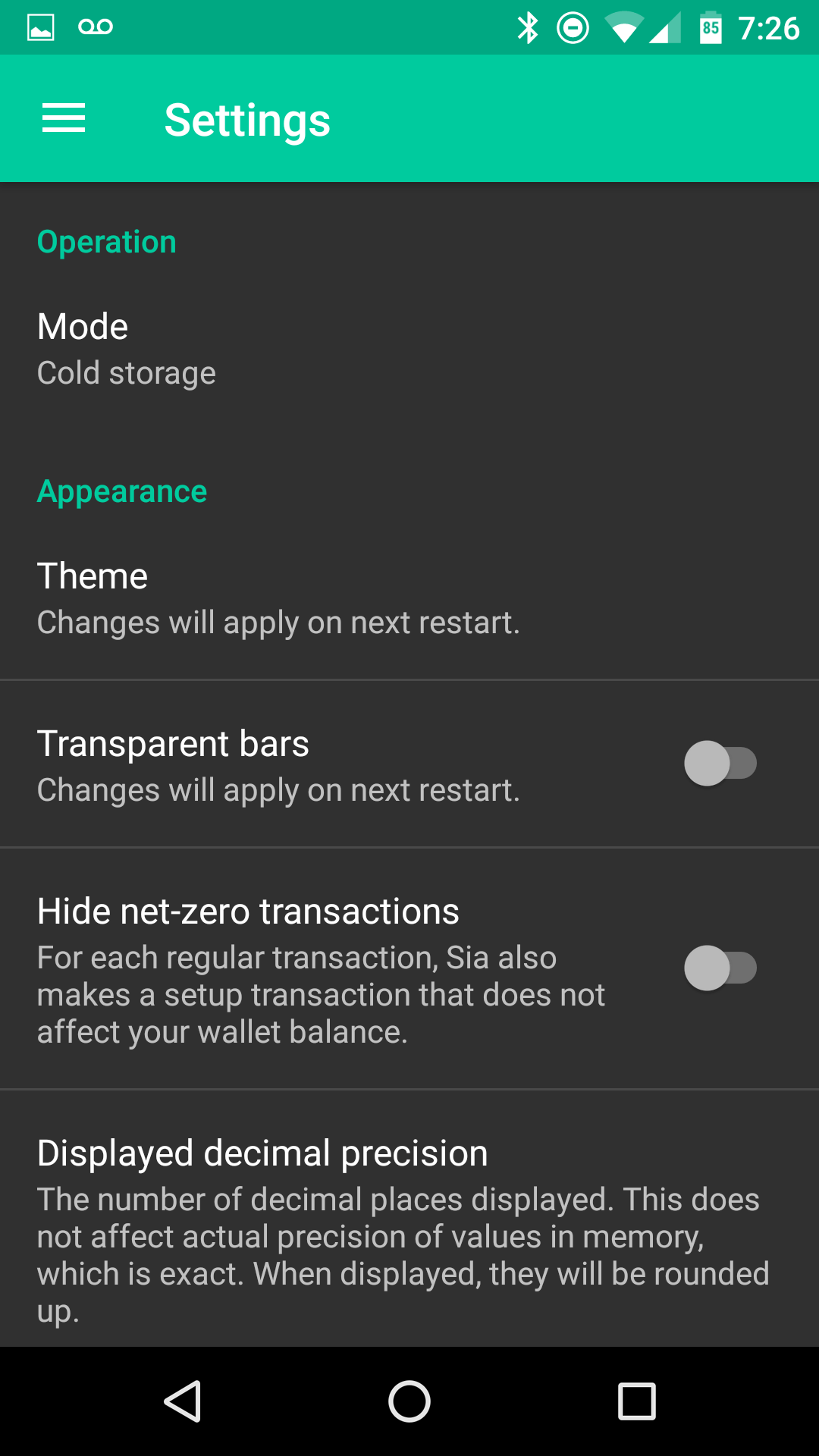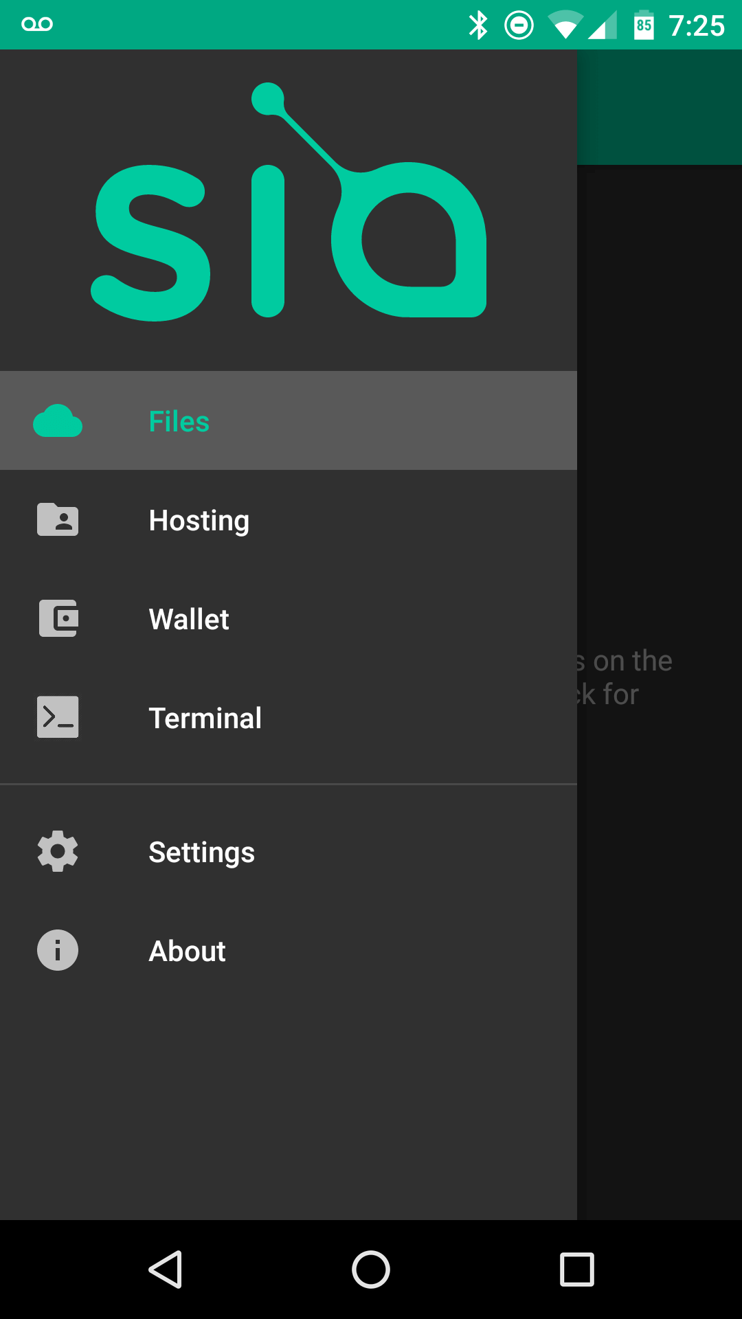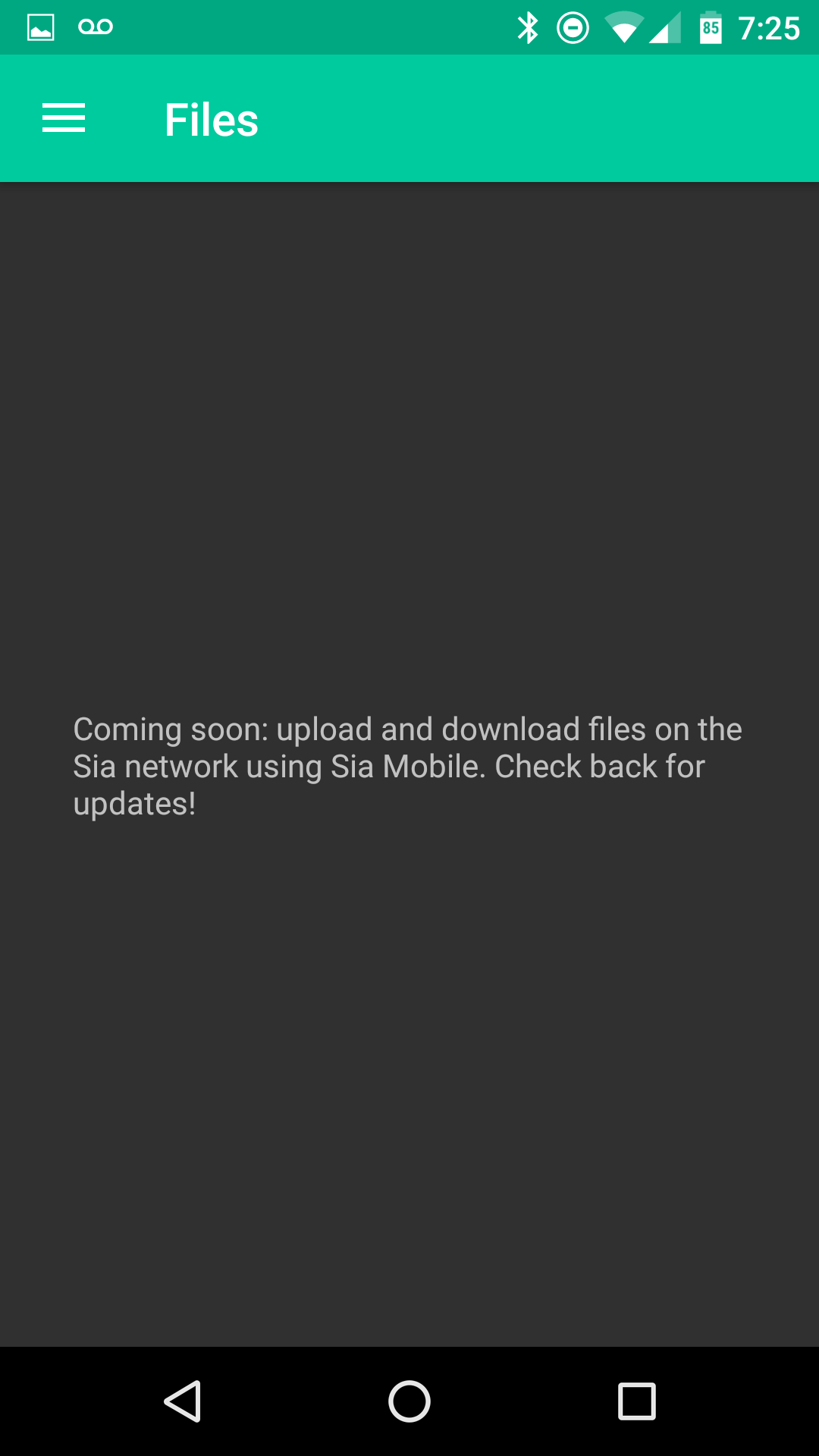 There is also an unofficial Sia mobile app. My phone is not powerful enough I guess to do much with the app so I grabbed some screenshots and that is about all I could do.