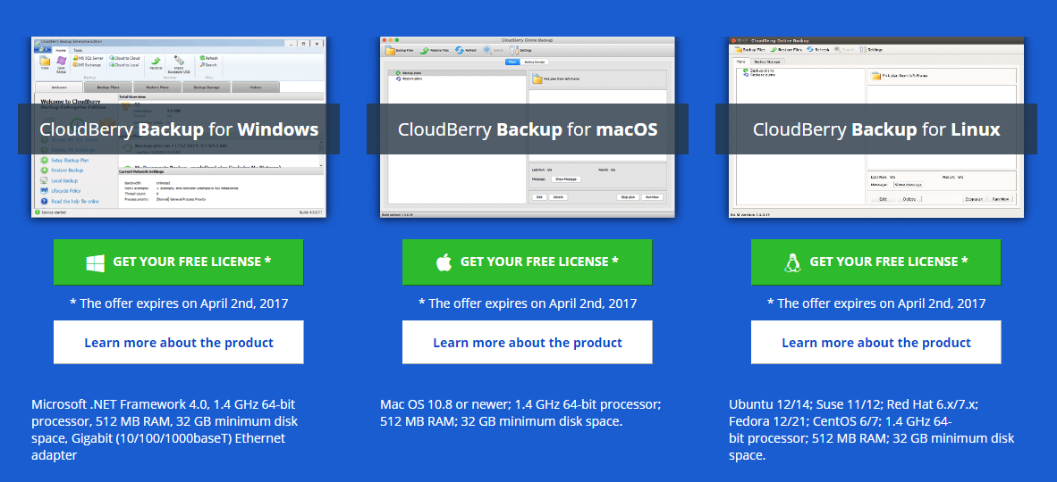 To get your free license visit the Cloudberry World Backup Day page, click the button for the version of the software you want and fill in the form.