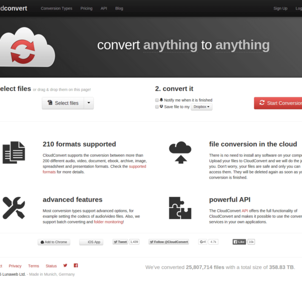 Overall it is pretty clear that CloudConvert is the clear winner between the CloudConvert and Zamzar. At one time I used to use Zamzar quite a bit but CloudConvert has won me over to their service for a few simple reasons like the ability to convert a website to an image and the better experience using the web app and not needing to enter an email address all the time. While the pricing structure for CloudConvert seems more confusing you might not need to worry about it since they offer a better free service.