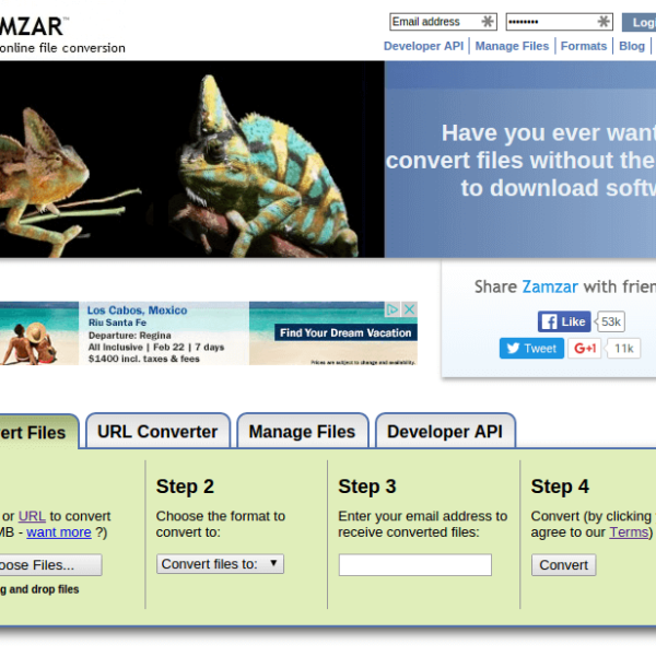 Zamzar The Zamzar experience is almost the same as CloudConvert but with one big difference. You cannot do a free conversion without giving your email address. This can be annoying if you just want to do a small document.