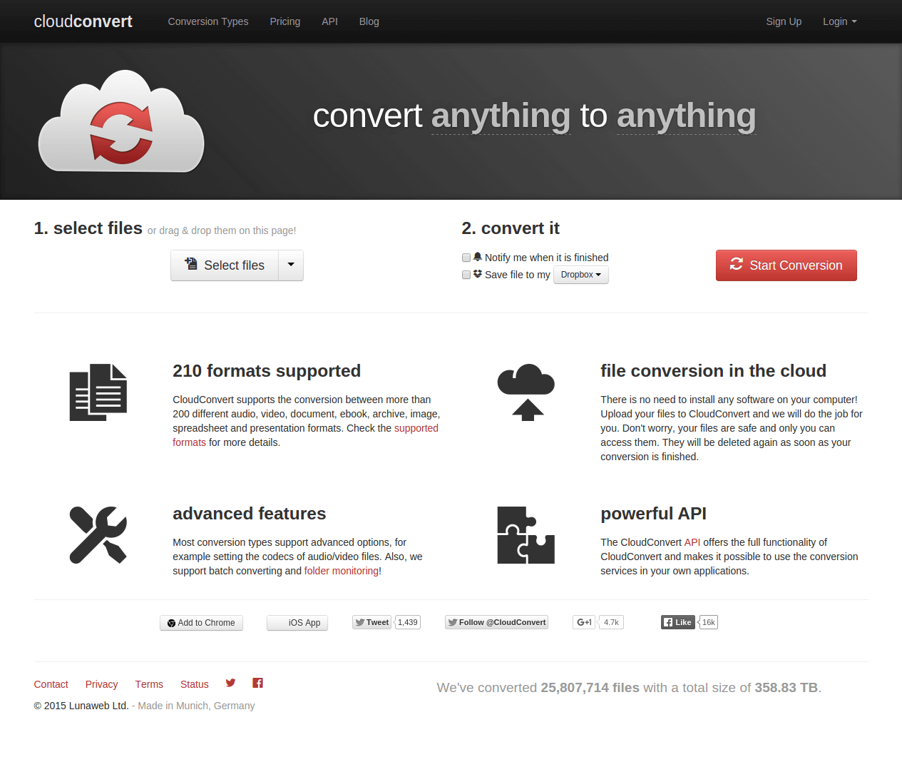 Overall it is pretty clear that CloudConvert is the clear winner between the CloudConvert and Zamzar. At one time I used to use Zamzar quite a bit but CloudConvert has won me over to their service for a few simple reasons like the ability to convert a website to an image and the better experience using the web app and not needing to enter an email address all the time. While the pricing structure for CloudConvert seems more confusing you might not need to worry about it since they offer a better free service.