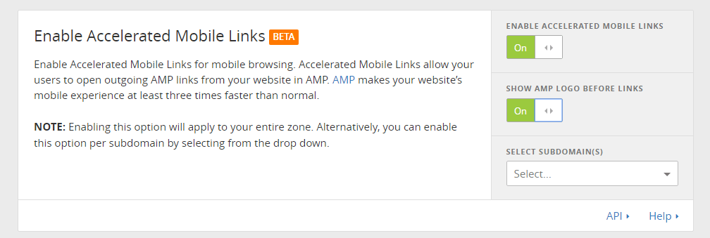It also makes it easier for those that manage websites. No longer do we have to worry about what version of a story to link out too, CloudFlare will simply send the user to the correct link. CloudFlare has made it easy for their users to turn on AMP links. CloudFlare users just need to log in to their CloudFlare account, select the website they would like AMP Links turned on for and visit the Speed tab. Scroll down and CloudFlare users should see a section that looks like the image below.