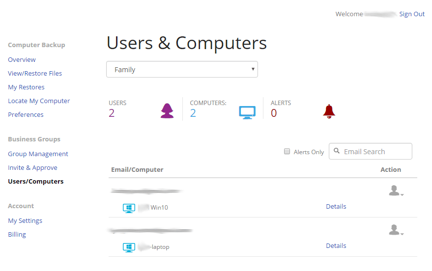 After my wife and I joined the Family group I created I can see and manage both of the accounts from the group menu. This makes it much easier for me to restore files for my wife if she needs it, and I will not have to worry about subscriptions expiring again since they are all now managed here in the same place.