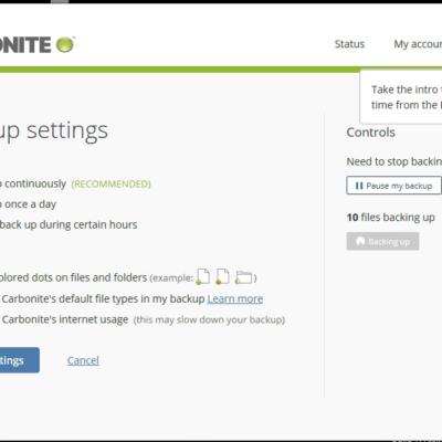 Signing up and getting started with Carbonite is straight forward. Create an account on the website, download the app and start installation. Once installation is complete the app will start backing up. There was not even a need to enter user information, the app installation file is created to already know what account it was downloaded from. Not that entering in user account information is not overly cumbersome, but it does make it simple to start.