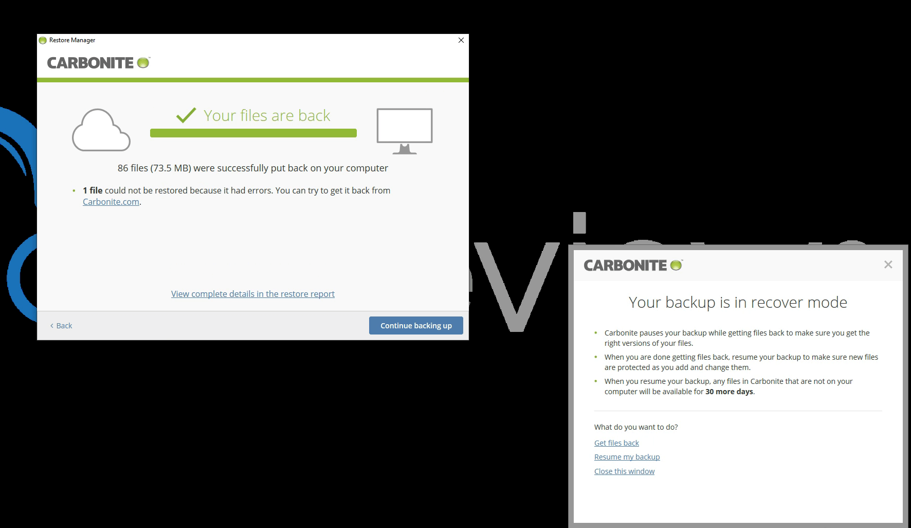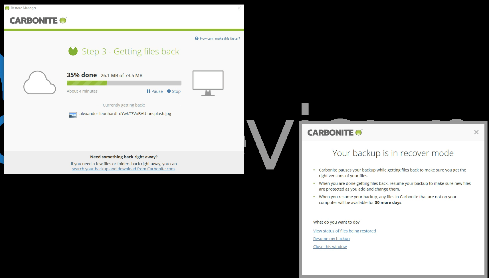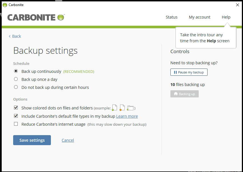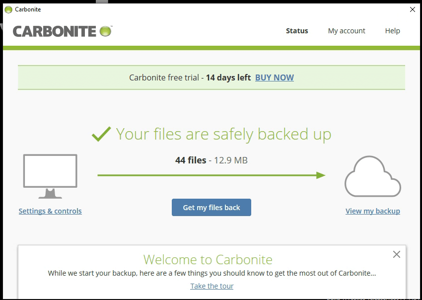 Signing up and getting started with Carbonite is straight forward. Create an account on the website, download the app and start installation. Once installation is complete the app will start backing up. There was not even a need to enter user information, the app installation file is created to already know what account it was downloaded from. Not that entering in user account information is not overly cumbersome, but it does make it simple to start.