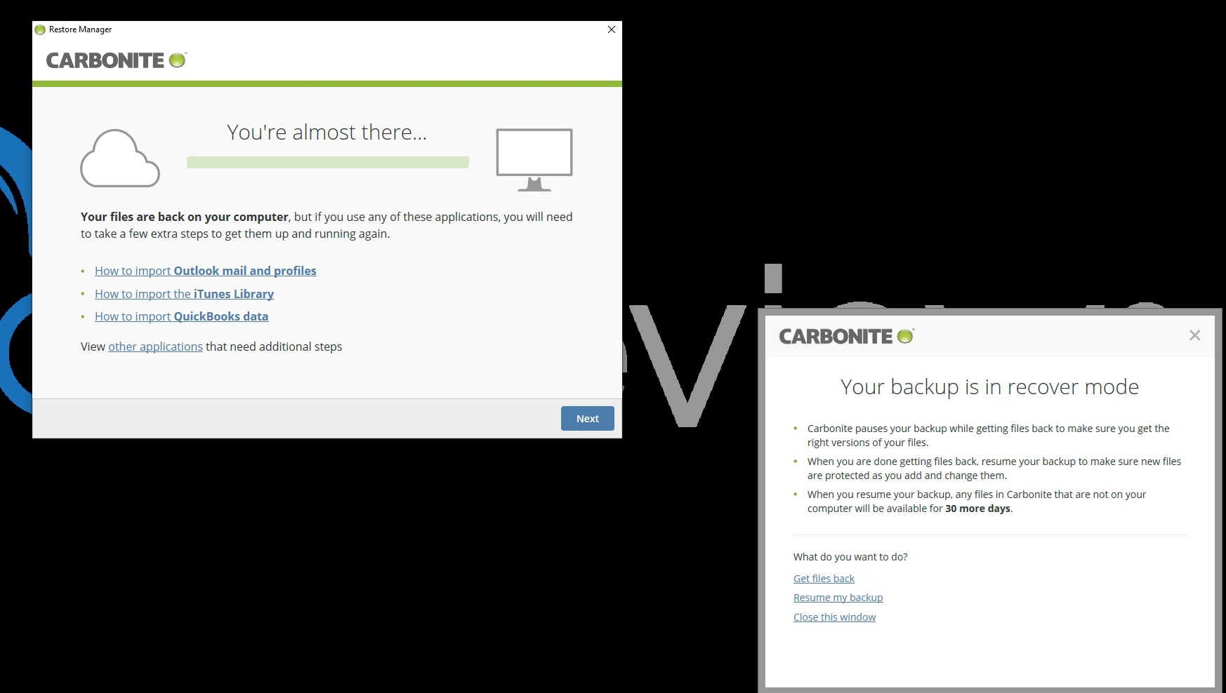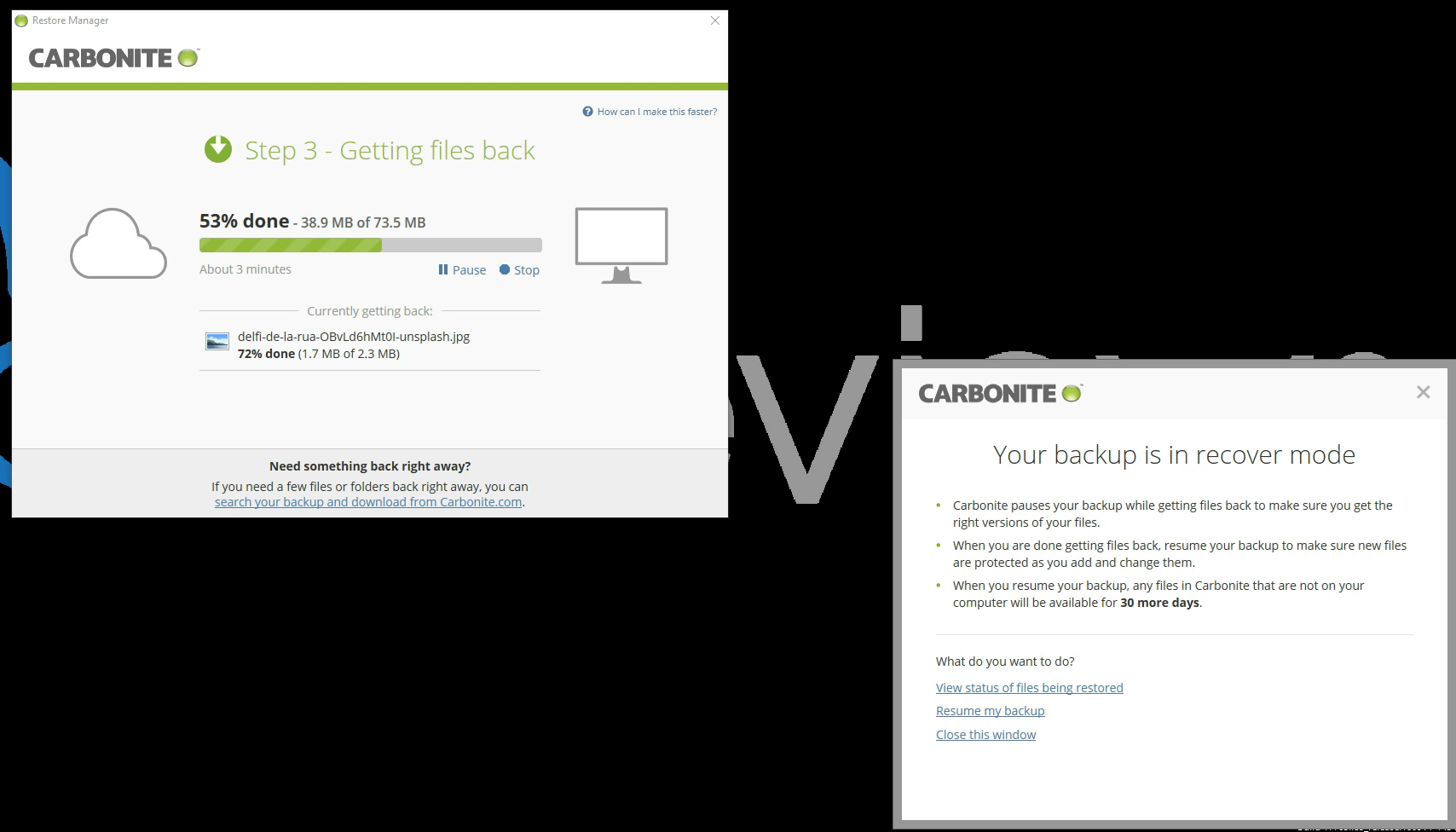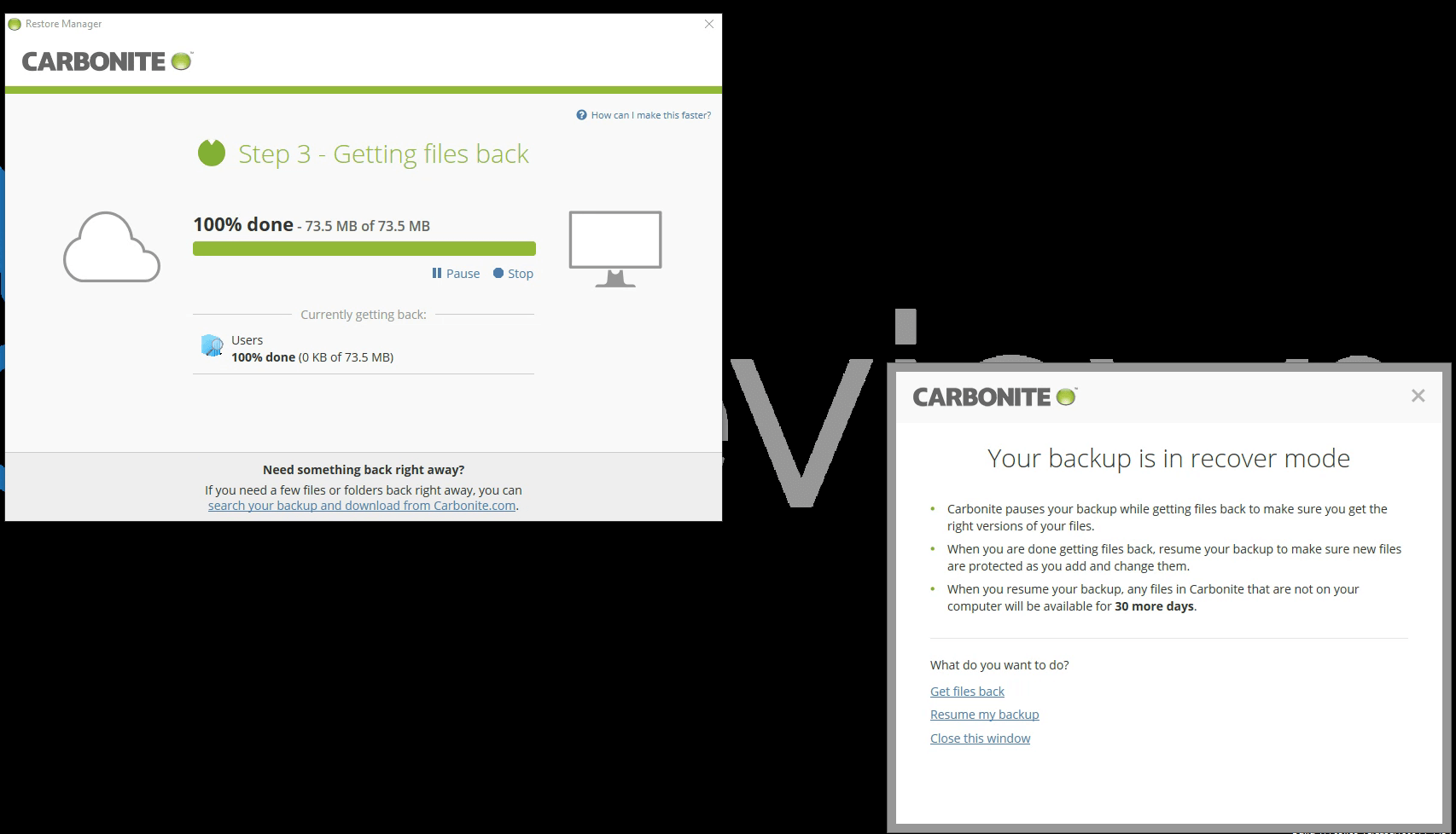 Signing up and getting started with Carbonite is straight forward. Create an account on the website, download the app and start installation. Once installation is complete the app will start backing up. There was not even a need to enter user information, the app installation file is created to already know what account it was downloaded from. Not that entering in user account information is not overly cumbersome, but it does make it simple to start.