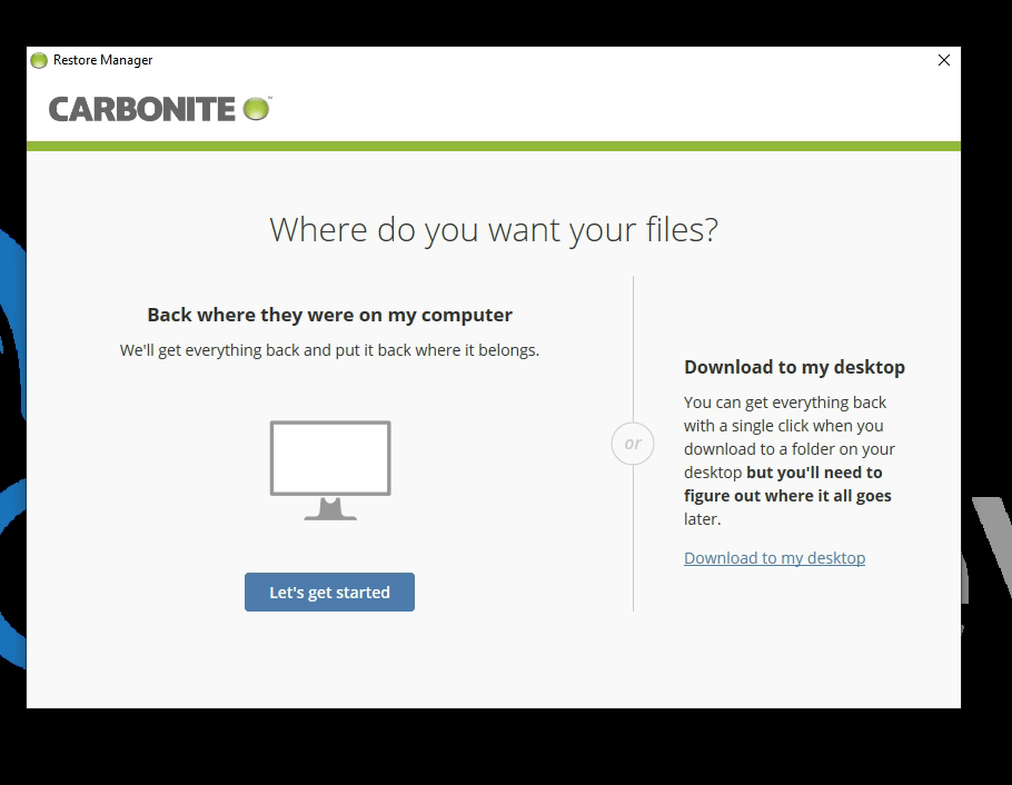 Restoring files you also have several options. If you need to just grab a few files you can login to the website and select a folder or a few files and download them. If you want to restore all of the files you can do that using the app. The restore wizard walks you through restoring them. You can restore to the original location or an alternate location. The app downloads all the files and restores them where you selected. I selected to restore them an alternative location and the app simply downloaded them all and placed them in the folder I selected.