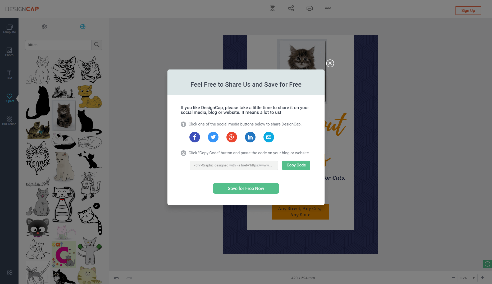 There is not a lot to complain about with the DesignCap Poster and Flyer online creator. The only problem I had with the tool was going to print the poster. Clicking the print icon on the top of the editing screen brought up the print screen but it was blank. This is not a huge issue though since you can also download a jpg verison of your poster and print it once you have it downloaded.