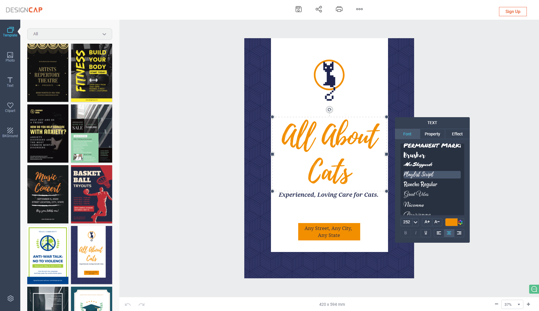 The DesignCap Poster and Flyer online creator lets you create a poster quickly and easily. It is free and you can download your creation. The price is certainly right, being free and the number of options are enough to give you lots of choice in your design while not overwhelming you with decisions.