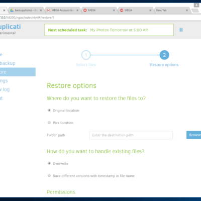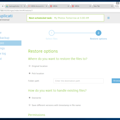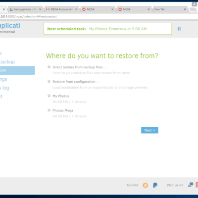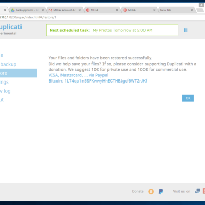 Below are some screenshots of my testing of Duplicati.