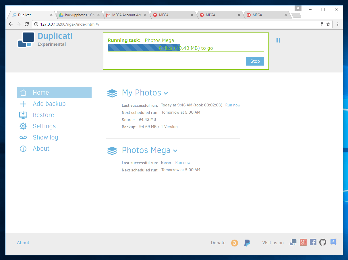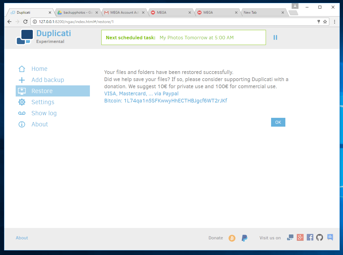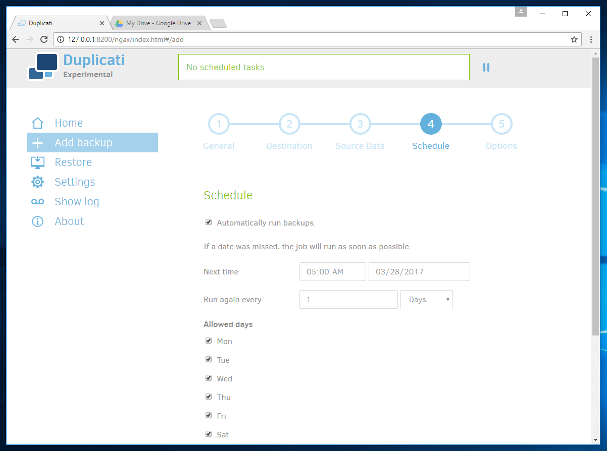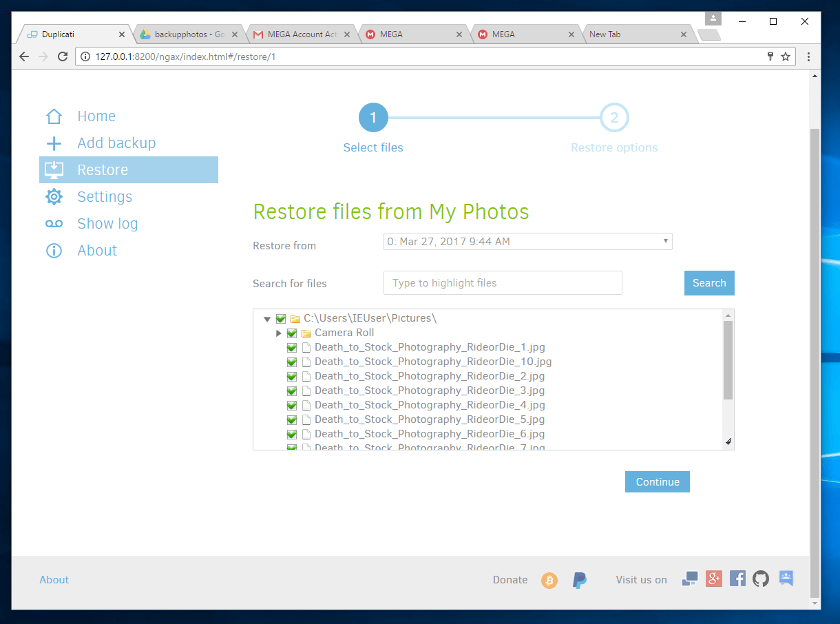 Below are some screenshots of my testing of Duplicati.