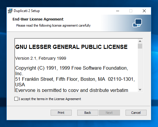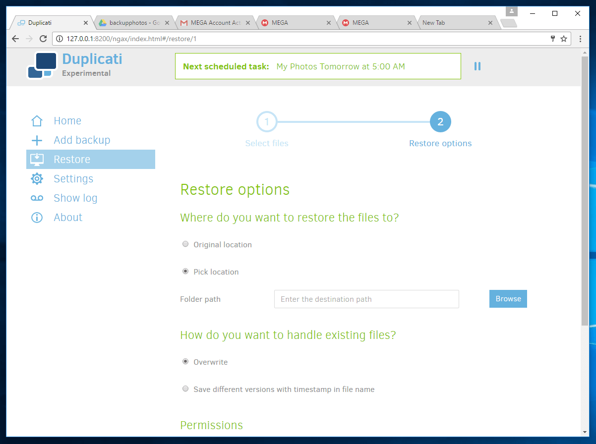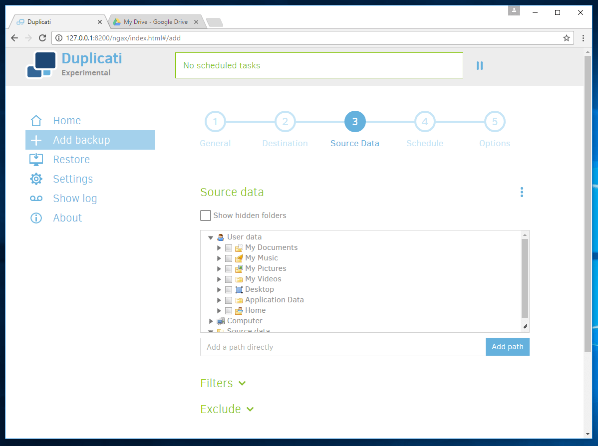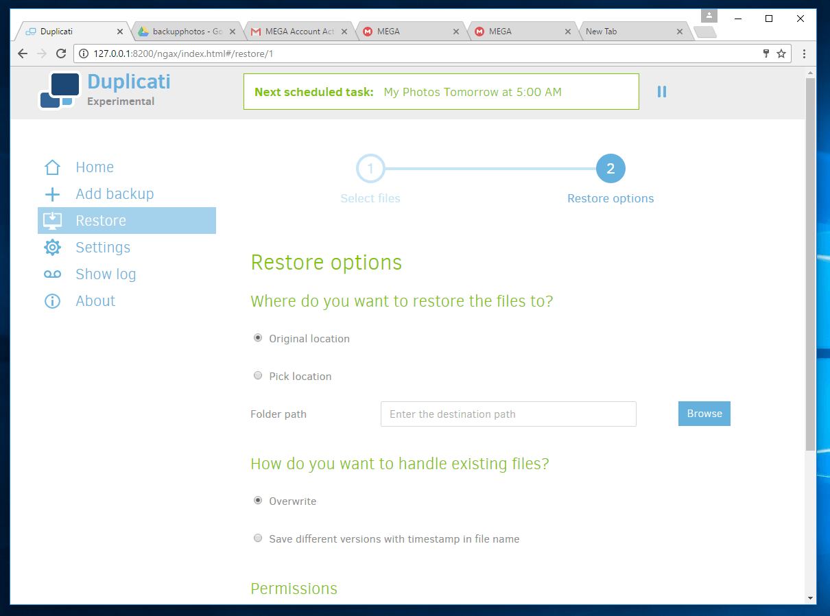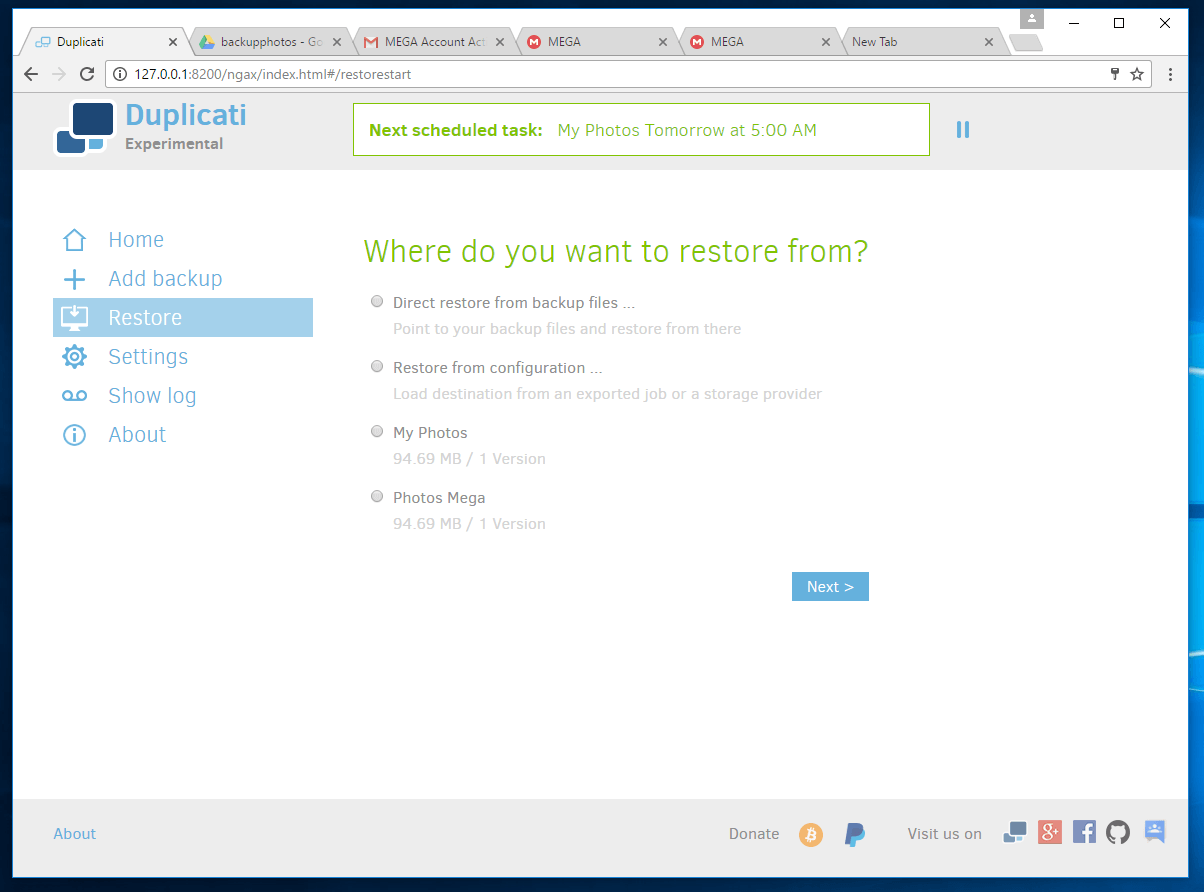 Below are some screenshots of my testing of Duplicati.