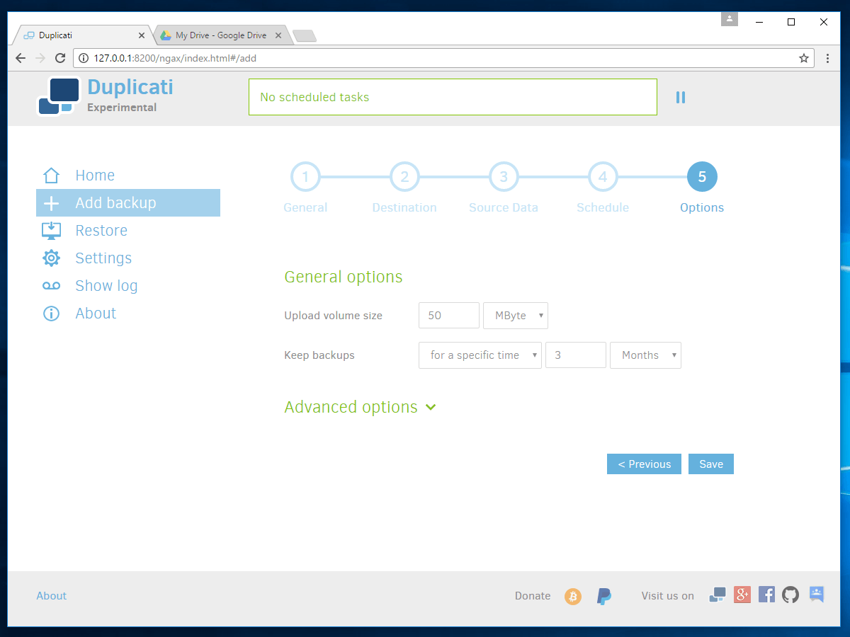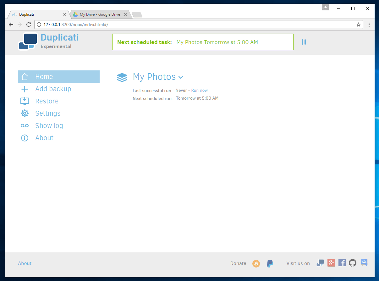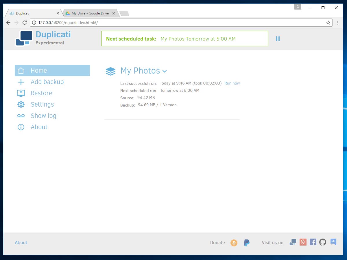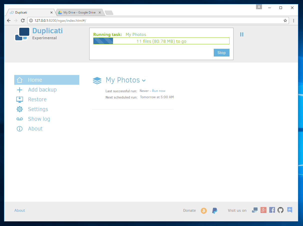 There are some things that really stand out with Duplicati. First off is the price. FREE! Not only is it free it is open source. You can find the source code here on GitHub. If you want to go through the code and see how the encryption works you can. Want to see how the Google Drive authentication happens, you can. In short Duplicati is all about freedom.