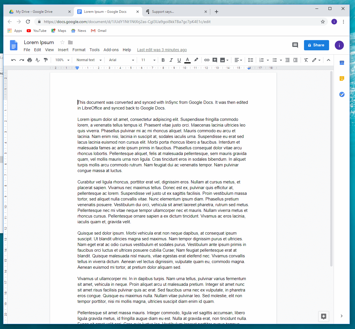Here is a combined video of me installing the Insync client on both a Windows 10 and Ubuntu Linux test machine. I also test the ability to convert the files to OpenDocument edit them in LibreOffice and sync the files back up to Google Drive. The ability to convert documents to desktop formats is really one of the best features of Insync. Makes working offline much easier. For this video I used a new account and not my own paid account since I did not want to give the whole world my paid account user name.