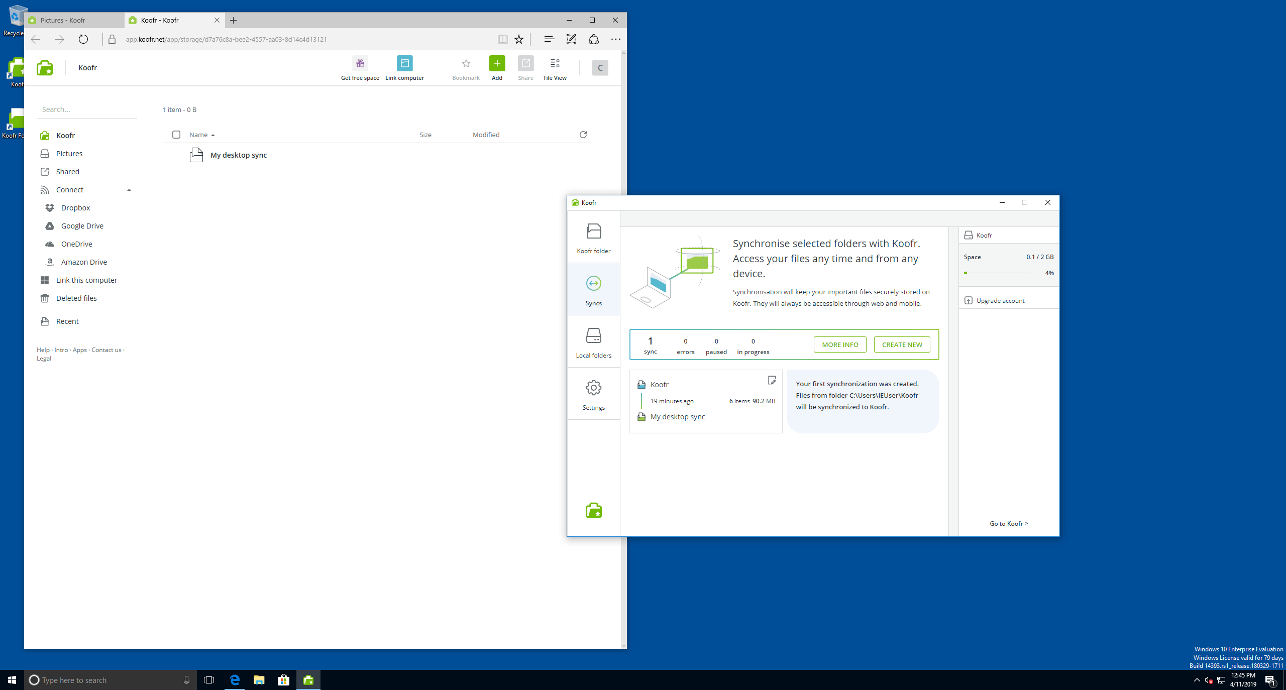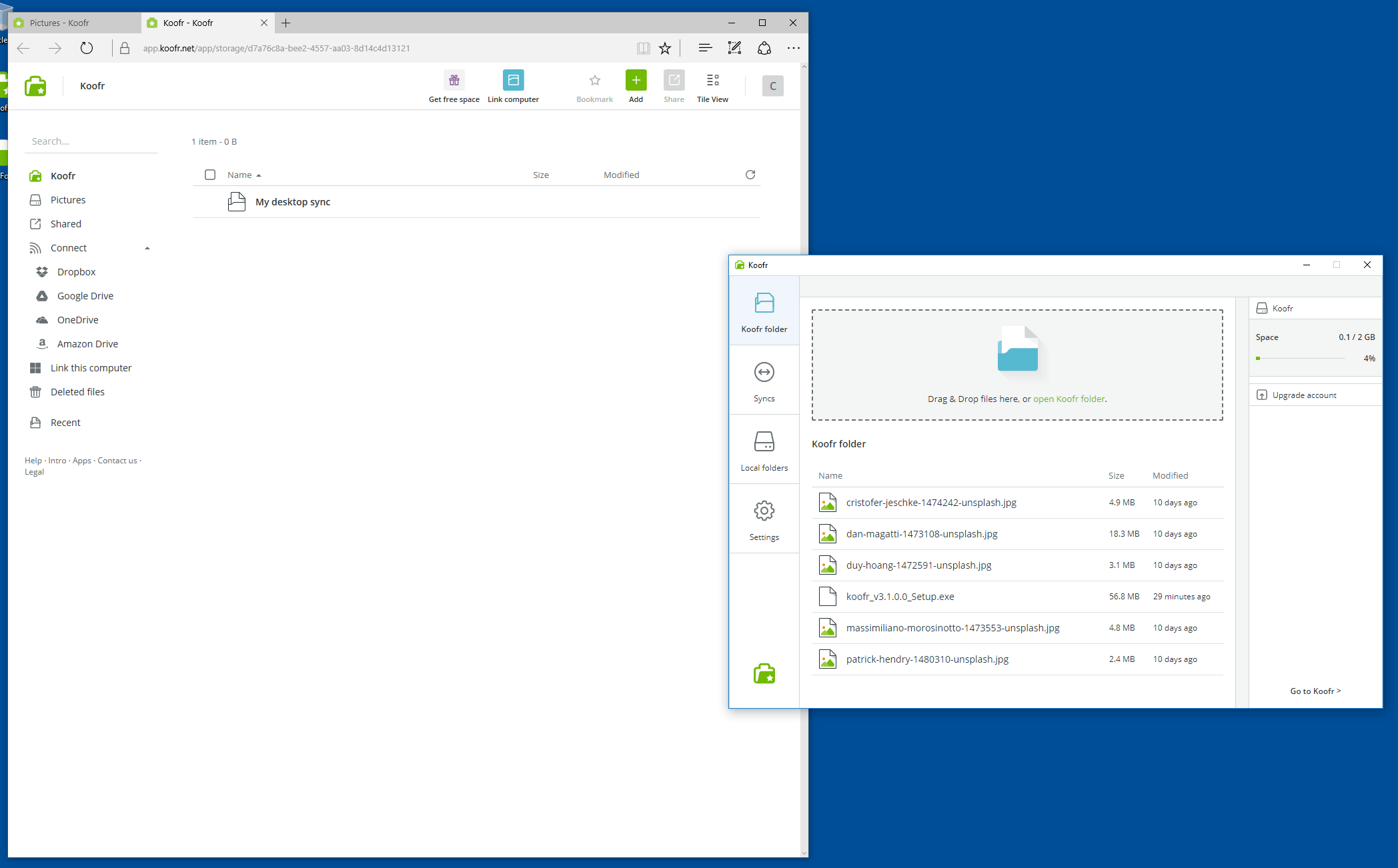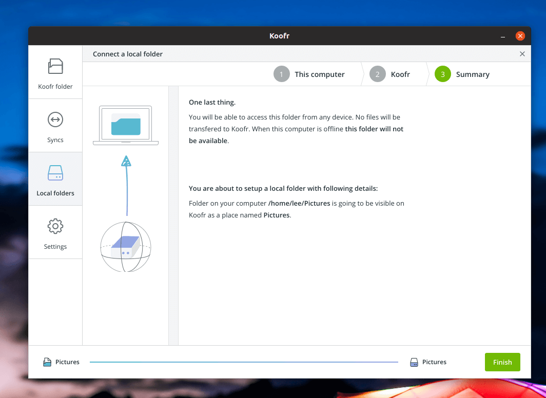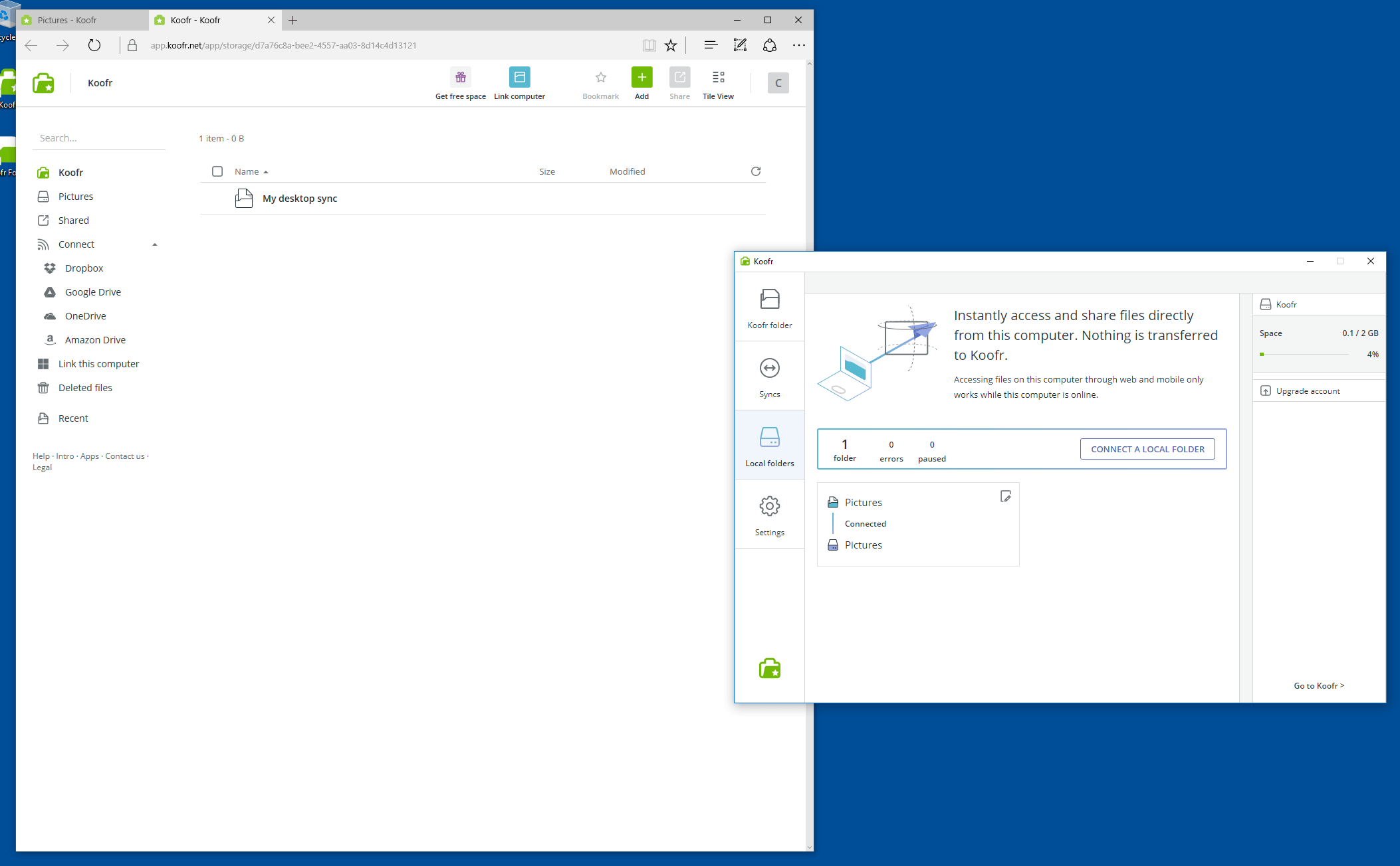 A unique feature of Koofr is called local folders. Local folders allows you to create a desktop folder to be made available through Koofr, but not actually sync that folder to Koofr. The files and folders in the local folder is only available when that desktop is online. It essentially creates a private shared folder between the Koofr app so the user can access those files, upload files directly to that computer and even edit them if you want.
