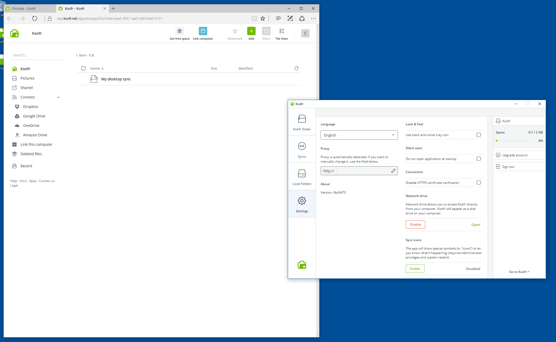 The second feature that stood out for me about Koofr is the ability to add sync folders from other locations on the desktop other than the default sync folder. Most of the cloud storage sync services only sync files inside of their special sync folder and if you want to sync files you need to move them to that sync folder or they will not be included. The ability to have folders and files synced outside one special folder makes it easy to add and sync files. Koofr then creates a folder mirroring those files from the added folder. It was a nice added feature.