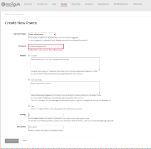 Adding routes (forwards) on Mailgun is easy, and if you have ever created a forward on cPanel or other control panel you can easily master routes on Mailgun. Depending on whether you want a catch all or to match a specific email address you can easily create routes to forward mail for users. I recommend creating routes that match specific email addresses, no point in forwarding mass email for tons of spam, that will just end up costing you money. Once you have your route setup email for that person will be forwarded on to the email address you added.